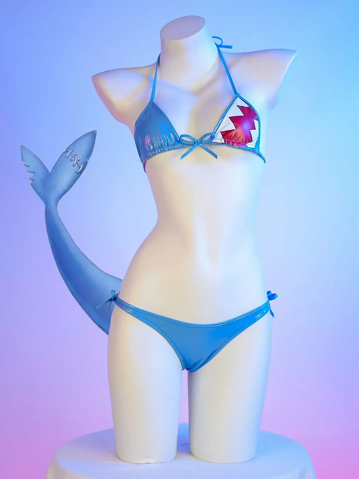 Sexy lancería COSPLAY anime HOLOLIVE VTUBER. Esta lenceria diseñada con detalles encantadores enmarca delicadamente tus curvas . Sorprende a tu pareja con este conjunto COSPLAY de CHICA TIBURON .
